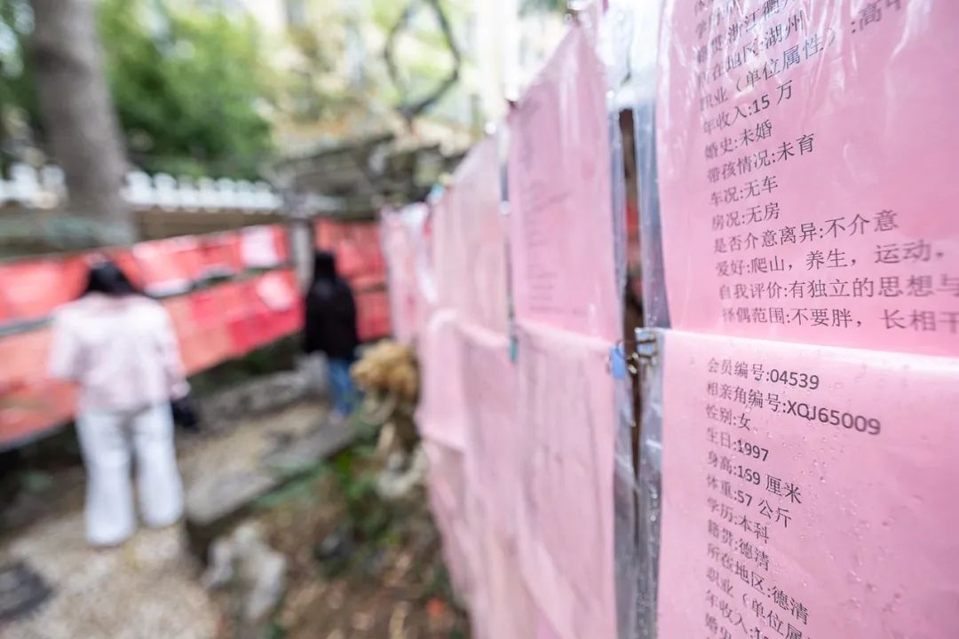 ▲适龄青年在一处相亲角寻觅爱情。在琳琅满目的征婚交友信息中,寻觅者对伴侣的体重要求格外突出