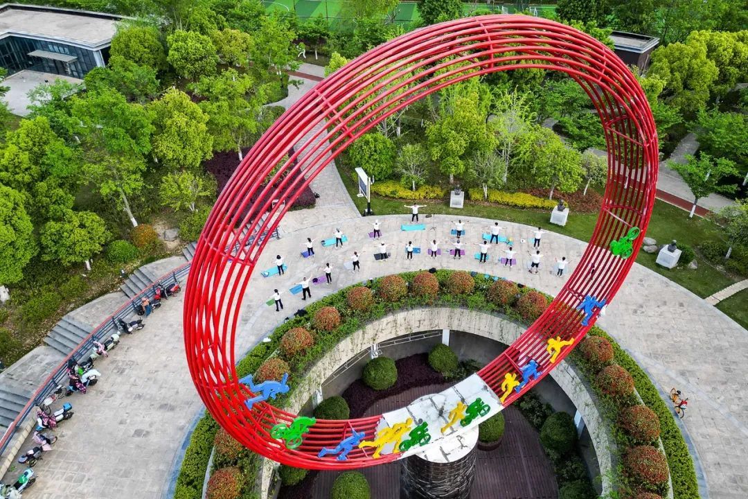 ▲一群长期坚持体重管理的市民在公园的运动加油站健身。运动加油站站长龚循红介绍,该公益站点已帮助上百人实现减重