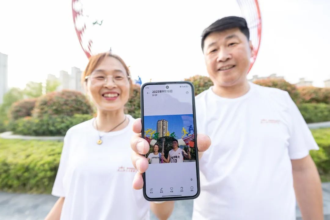 ▲一对夫妻展示他们2019年参与体重管理时的照片。运动多年的他们实现了减重30斤以上的目标