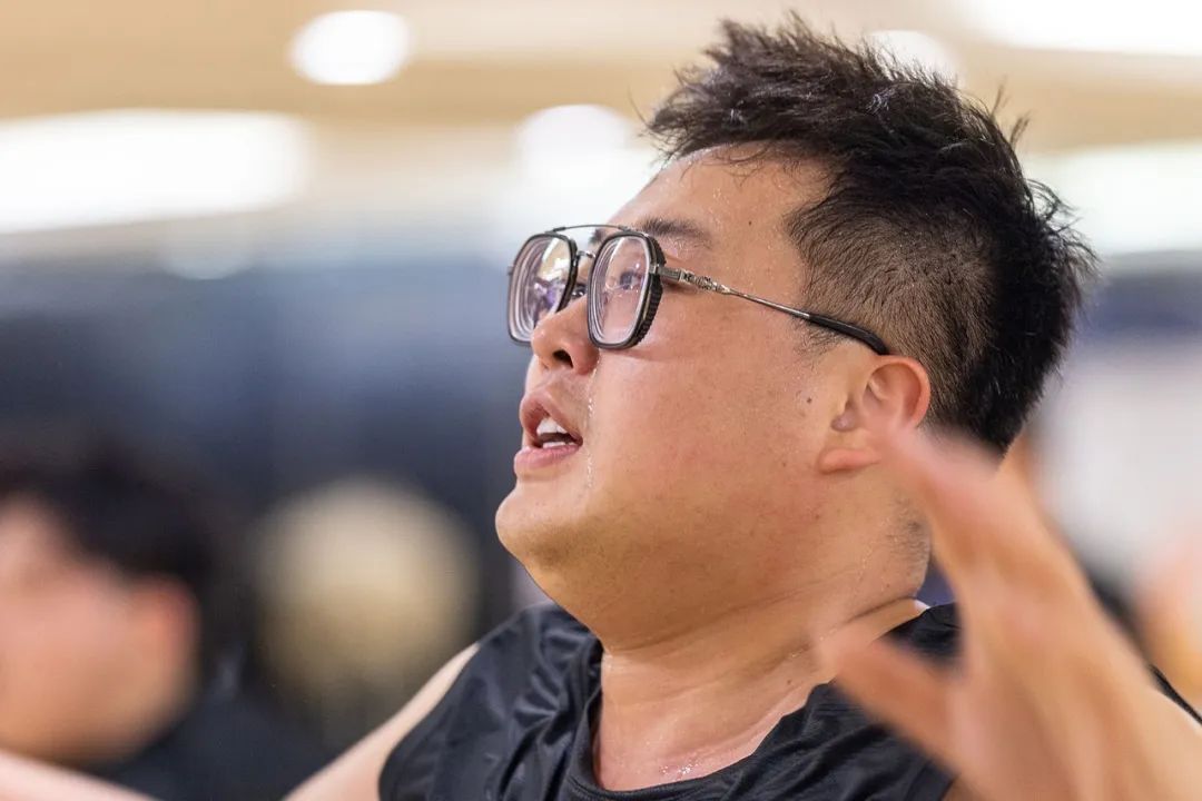 ▲在一个专业减重营里,体重超两百斤的大睿 (化名) 正在健身。他和妻子已经在减重营里减重20斤
